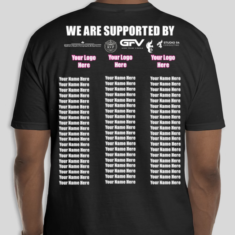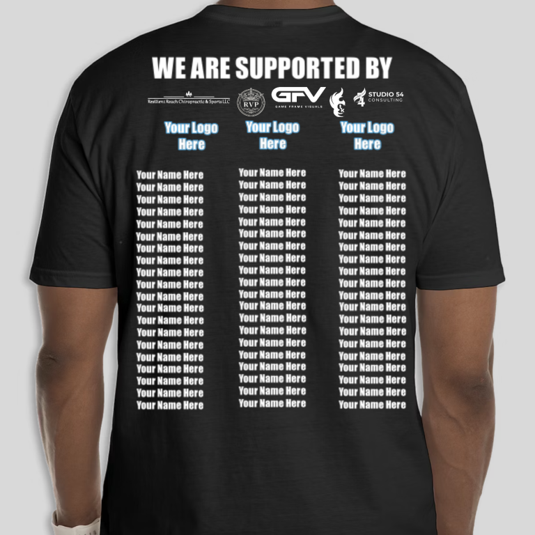 Become a Bronze Sponsor to get your name on the fan shirt, become a Silver, Gold, Platinum, or Diamond sponsor to get your logo on our shirts! Learn more about Sponsorships HERE